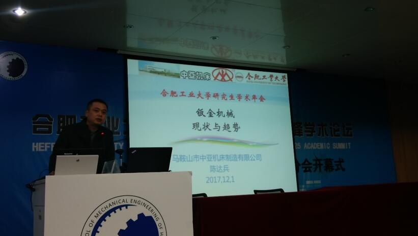 12月1日下午,机械工程学院于机械楼214成功举办2017年机械工程学院学术交流高峰论坛会第三场报告会,这场报告会由机械设计系与汽车装备工程技术研究所举办。安徽省数控剪折装备工程技术研究中心主任,中亚机床有限公司技术总监——陈达兵先生应邀出席并作了主题为“钣金机械应用与发展趋势”的报告。