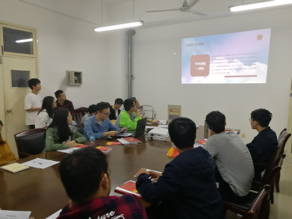 10月11日晚上19:30,该支部所有党员在格物楼713进行集中,紧扣“不忘初心,牢记使命”的主题,进行了集中学习,由王守成书记为支部成员们讲了一次内容详实、生动精彩的党课。期间,王守成以自己童年时期对比当下生活条件发生的具体改变为例,讲了新中国改革开放40年来发生的各种巨大变化,展现了我国经济条件大幅改善,人民生活水平大幅提高,国家实力和综合国力跃居世界前列的伟大成就。王守成同志通过自身体会感召大家要珍惜当下,做好自己的本职工作,不忘自己的初心,牢记自身肩负的历史使命,努力为中华民族的伟大复兴贡献力量。