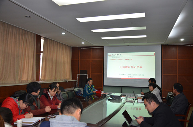 12月6日下午,机械工程学院机关党支部在格物楼308开展党的十九大精神专题学习会,院党委副书记、副院长郑召丽作了学习报告,机关党支部全体成员参加了本次学习会。
