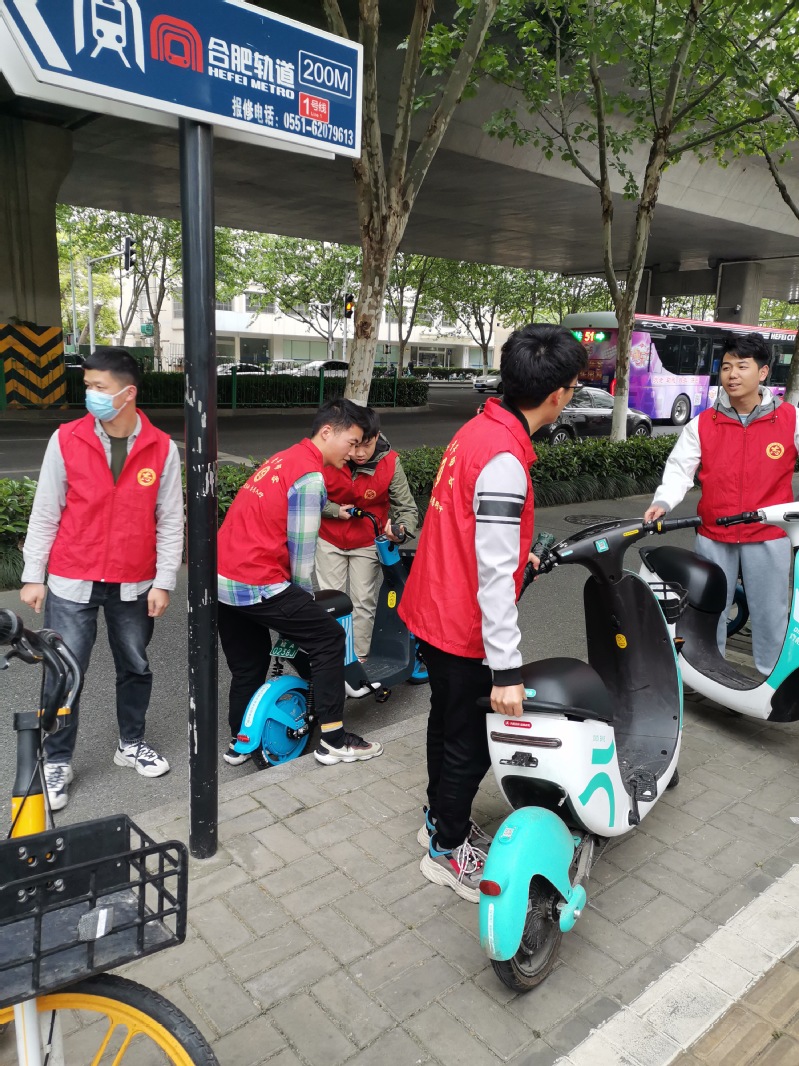 活动前期,同学们积极响应,争相报名,想要利用自己学习之外的时间回报学校、反哺社会。活动中,志愿者们分组行动,将共享单车及共享电动车按类别摆放在共享单车停靠点,扶起歪斜、倒下的自行车辆,志愿者们将车框中的广告单、垃圾按类别扔入垃圾箱内。同时,志愿者们向骑车的市民、同学发放倡导文明出行的宣传单。整个过程虽苦累,但让同学们度过了一个远离电子产品,缓解科研压力,挥洒汗水,强身健体的闲暇时光。