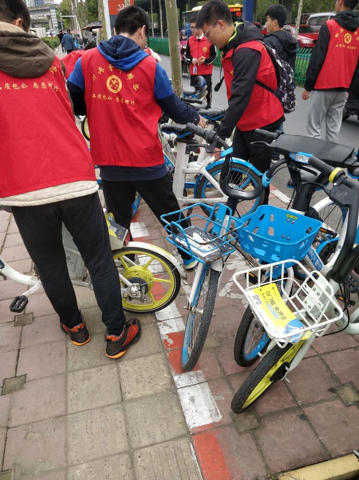 15名志愿者分组前往屯溪路校区东西南北校门口、附近地铁站口以及马鞍山、南一环路段的共享单车集中停放点进行志愿服务。志愿者们将随意摆放的共享单车在集中停放点重新排列摆放,并对单车车筐以及车身的垃圾和广告进行清理,使学校周边的共享单车集中停放点重现干净整齐的面貌。志愿活动中,志愿者们还对正在使用共享单车的市民进行文明骑行,文明停车的劝导,帮助市民提升文明骑行意识。参加志愿活动的志愿者们纷纷表示,通过这次志愿活动,不仅充实了自己的课余生活、增强了志愿服务意识,还充分认识到了文明用车的重要性。同时,个学生志愿者很高兴能为合肥市文明建设献添砖加瓦。