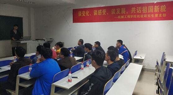 为进一步提升大学生爱国情怀,奉献精神,激励广大学生党员不忘初心,牢记使命,争做新时代优秀青年。4月27日,机械工程学院机械设计及理论研究生党支部在格物楼620教室开展了“铭记祖国进程 凝聚奋进力量”主题教育学习活动。