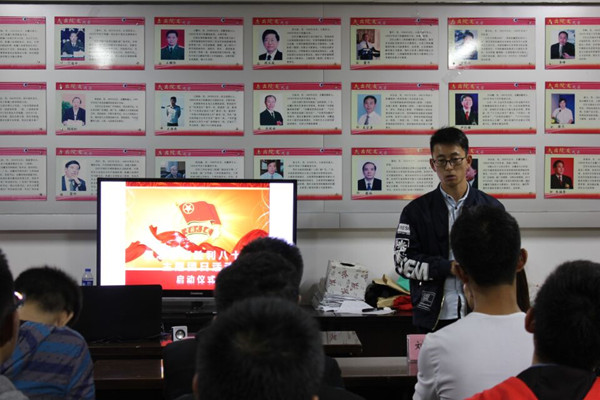 为铭记红军丰功伟绩,继承和弘扬伟大的长征精神,走好新的长征路,机械工程学院团总支制定策划,在全院同学中开展主题团日活动。在启动仪式上,所有与会者首先观看了习近平总书记在纪念红军长征胜利80周年大会上的重要讲话,习近平总书记在讲话中强调,“弘扬伟大长征精神,走好今天的长征路,必须坚定共产主义远大理想和中国特色社会主义共同理想,为崇高理想信念而矢志奋斗”,在场所有学生干部无不被习近平总书记谈到的长征精神深深打动。在观看完习近平总书记的讲话后,大一辅导员马超针对长征精神发表了自己的看法。他从为什么要纪念长征精神,如何纪念长征精神,以及当代大学生应怎么做三个方面来阐述了对长征精神的理解,并向在场学生干部提出要做有理想、有追求的大学生,做有担当、有作为的大学生,做有品质、有修养的大学生的期望。会议最后,大二团支书代表向大一学生干部分享了举办团日活动的经验,对学院团日活动的开展起到了积极的促进作用。