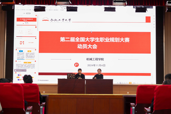 为进一步提升学生职业生涯规划能力,帮助学子充分备赛,实现以赛促学,引导学生树立正确的成才观、就业观和择业观,科学合理规划学业与职业发展,机械工程学院于11月5日晚在科教楼二楼报告厅举行职业规划大赛动员培训活动。2024级辅导员左旭、张景晗以及500余名同学参加了此次大会。