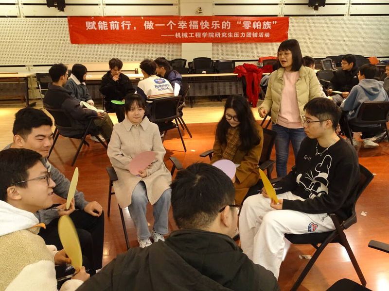 11月27日下午,机械工程学院研究生在格物楼316开展“赋能前行,做一个幸福快乐的零帕族”压力管理第五次团体辅导--“做‘零帕族’---行为疗法”主题活动。活动由机械工程学院研究生辅导员、国家三级心理咨询师侯静指导。