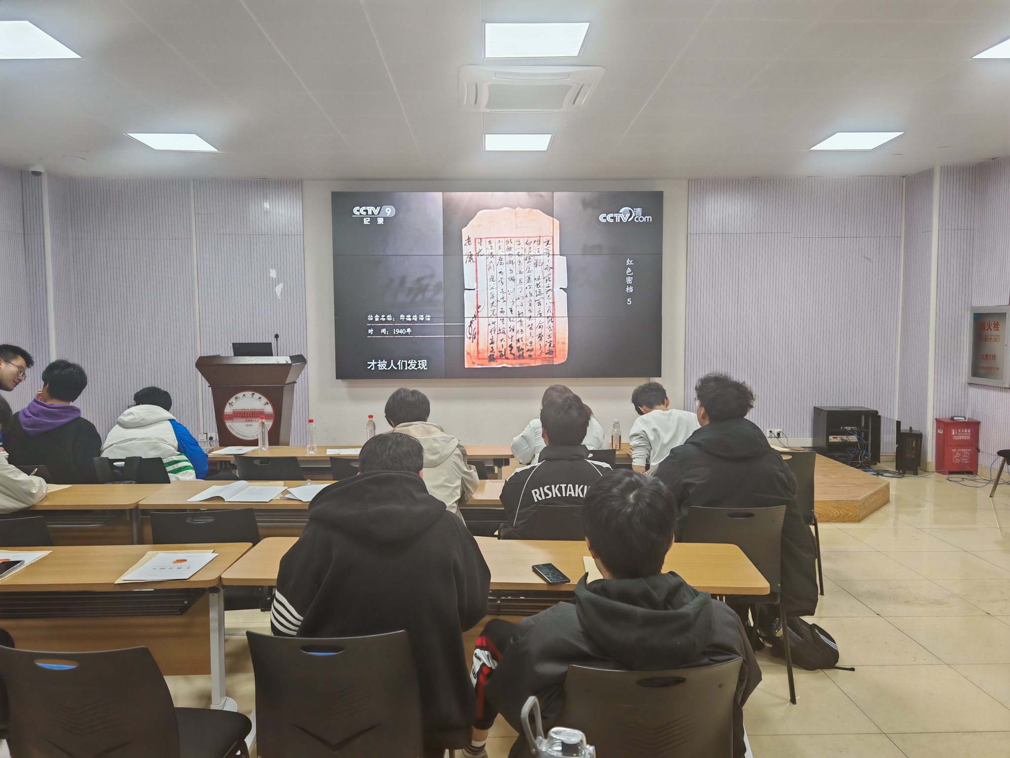 现场,团员们共同观看纪录片《红色密档:字里行间》,影片通过珍贵的历史档案和详实的影像资料,生动展现了革命先辈们在艰苦卓绝的斗争环境下,为了民族独立和人民解放而不惜抛头颅、洒热血的英勇事迹。那些泛黄的纸张、模糊的字迹,无不诉说着一个个惊心动魄的革命故事,深深震撼着在场每一位团员的心灵。