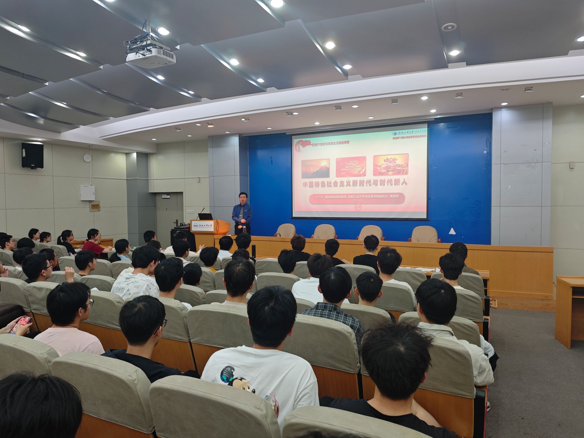 4月9日,十一十二届安徽省政协委员、合肥工业大学党校原常务副校长姚跃传作了题为《中国特色社会主义新时代与时代新人》的报告。
