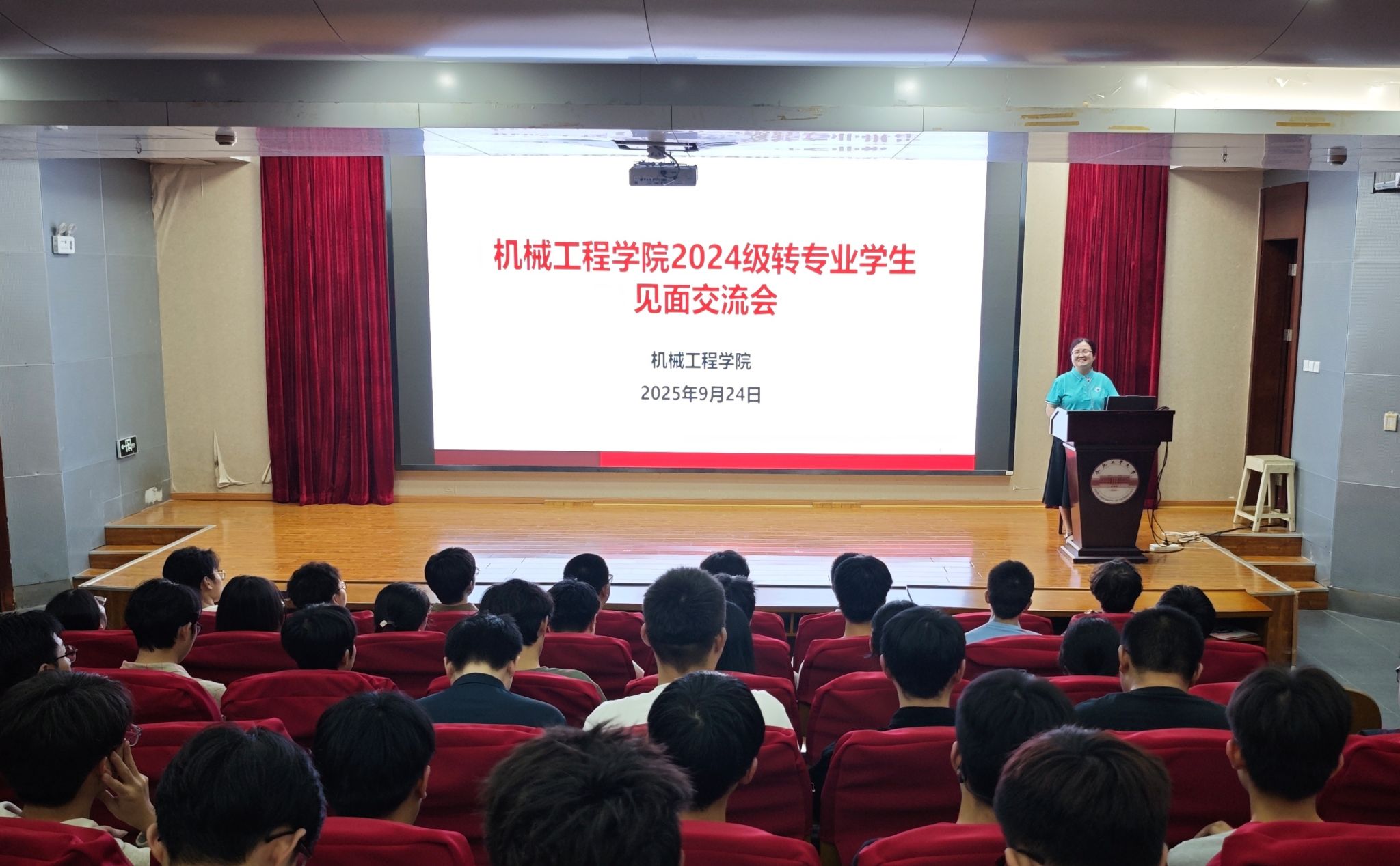 为助力转专业学生快速融入新集体,9月24日晚,机械工程学院在建艺馆报告厅举办2024级转专业学生见面交流会。学院党委副书记兼纪委书记蔡伟伟、2024级辅导员和全体2024级转专业学生100余人参会。