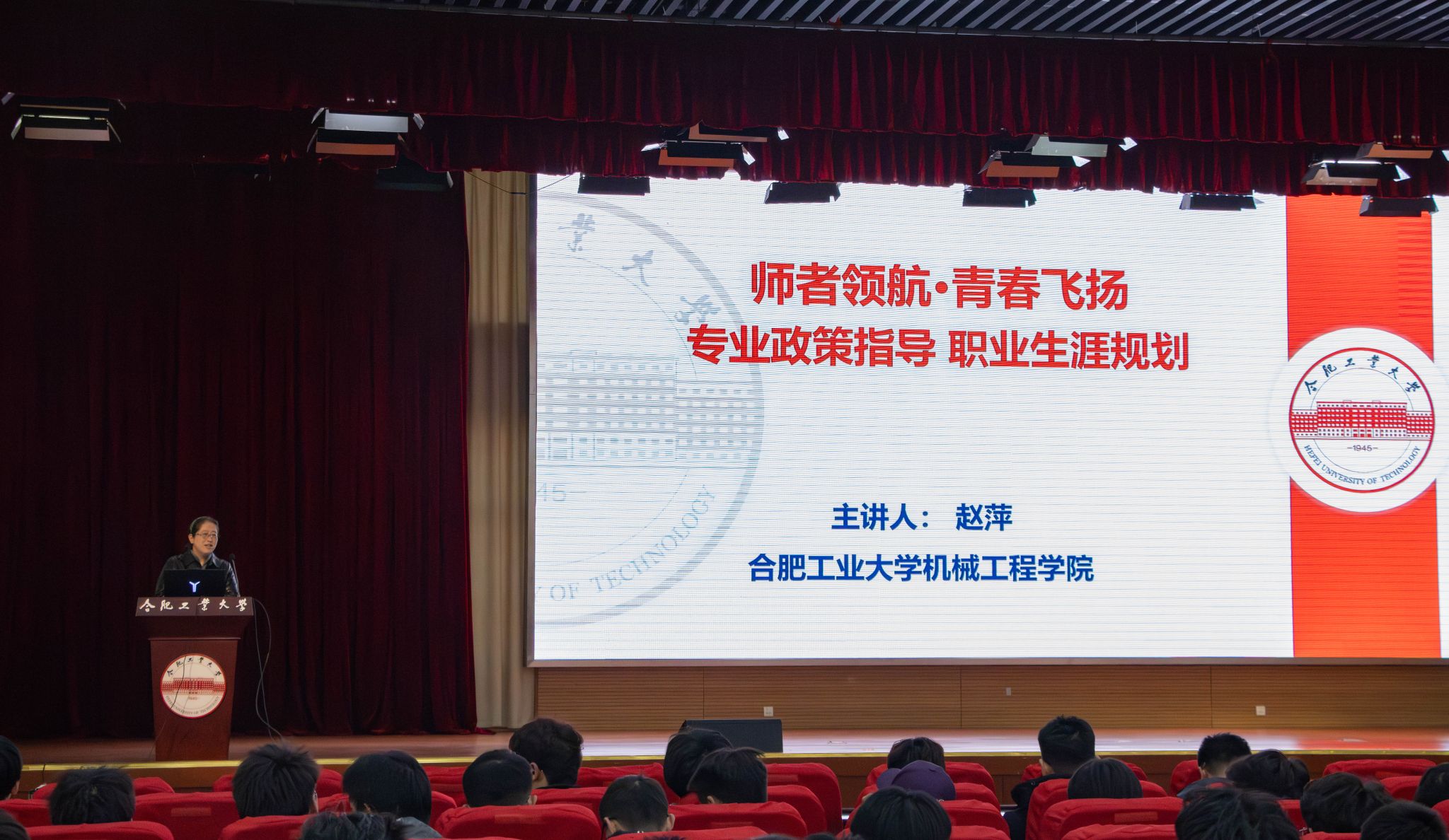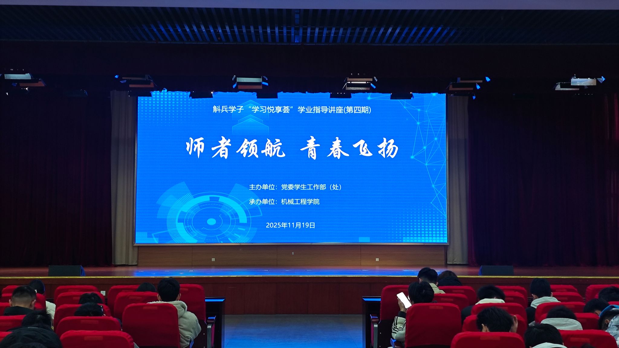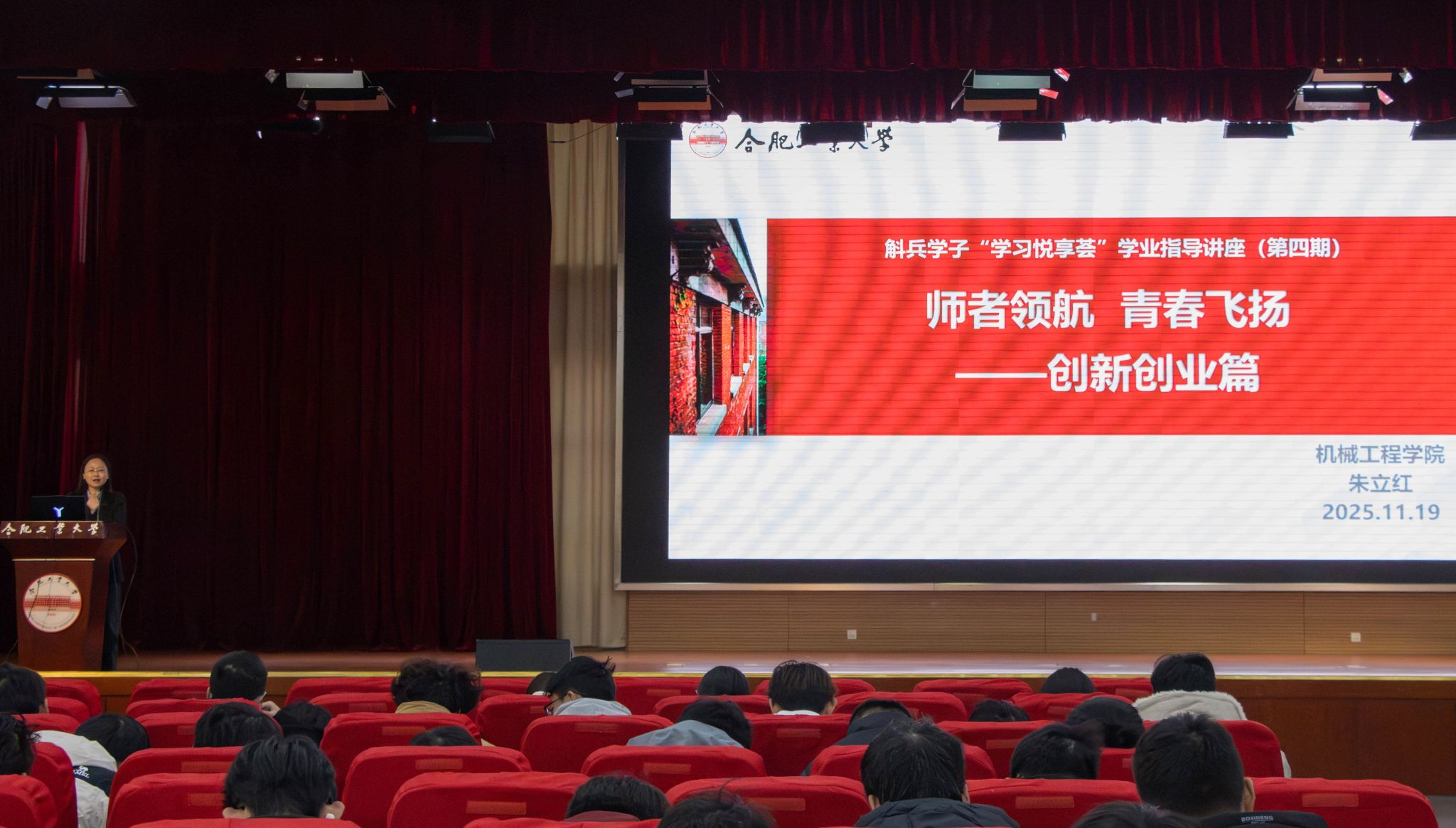 11月19日,由合肥工业大学党委学生工作部(处)主办、机械工程学院承办的第四期斛兵学子“学习悦享荟”学业指导讲座在翡翠湖校区科教楼二楼报告厅顺利举办。机械工程学院副院长、博士生导师赵萍教授与合肥工业大学创新创业导师、朱立红副教授联袂主讲“师者领航,青春飞扬”主题讲座,全校500余名2025级新生现场学习。
