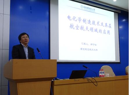曲宁松教授以“电化学制造技术及其在航空航天领域的应用”为题向与会师生作出精彩报告。曲宁松教授介绍了自身及南京航空航天大学朱荻院士电化学制造团队的研究经历,讲述了宏观电解加工、微细电解加工、电铸制造和电化学复合加工等方面的研究进展及在航空航天领域的应用案例。参会学生与曲宁松教授就电化学加工的性能优化机制等问题进行了讨论和交流。