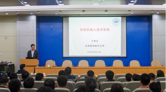 4月24日,北京航空航天大学丁希仑教授在学院格物楼214学术报告厅为英国上市公司365师生做了题为《仿生机器人技术发展》的学术报告。院长訾斌教授主持报告会,学院副院长祖磊教授、副院长黄海鸿教授及学院部分教授、青年教师和研究生100余人参加报告会。