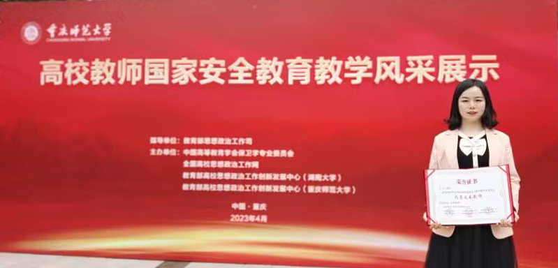 4月6日至8日,由教育部思想政治工作司指导,中国高等教育学会保卫学专业委员会、全国高校思想政治工作网、教育部高校思想政治工作创新发展中心联合主办的“高校教师国家安全教育教学风采展示活动”在重庆师范大学举行。我校参赛代表、机械工程学院辅导员丁玲表现优异,荣获全国“闪亮风采教师奖”。