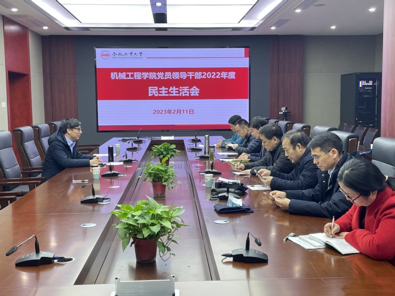 2023年2月11日上午,机械工程学院在校学术会议中心第一会议室召开了中层党员领导干部2022年度民主生活会,会议主题是全面贯彻习近平新时代中国特色社会主义思想,深刻领悟“两个确立”的决定性意义,增强“四个意识”、坚定“四个自信”、做到“两个维护”,团结带领党员干部群众以奋发有为的精神贯彻落实党的二十大作出的重大决策部署。学校副校长丁立健到会督导点评,学院中层党员领导干部参加会议,会议由学院党委书记张显东主持。