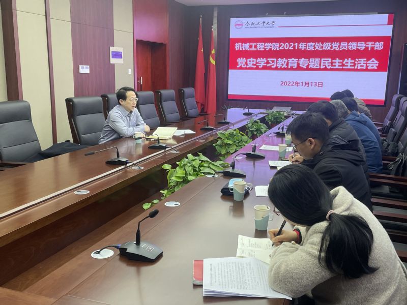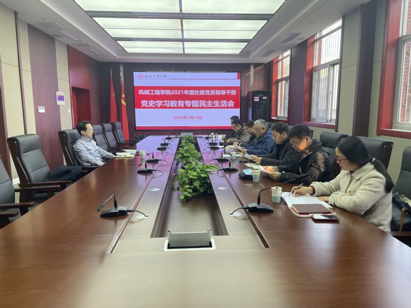 2022年1月13日下午,机械工程学院在校学术会议中心第二会议室召开2021年度处级党员领导干部党史学习教育专题民主生活会,会议主题是大力弘扬伟大建党精神,坚持和发展党的百年奋斗历史经验,坚定历史自信,践行时代使命,厚植为民情怀,勇于担当作为,团结带领人民群众走好新的赶考之路。副校长郑磊到会督导点评,学院处级党员领导干部参加会议,会议由学院党委书记陈科主持。