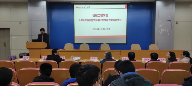 2020年12月23日下午,机械工程学院在屯溪路校区格物楼214报告厅召开学院2020年基层党支部书记抓党建述职评议考核答辩大会,学院党委委员和纪委委员、正处级组织员、全体党支部书记参加会议,会议由学院党委书记陈科主持,会议持续了三个半小时。
