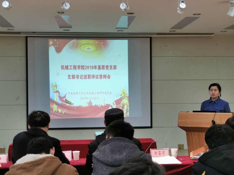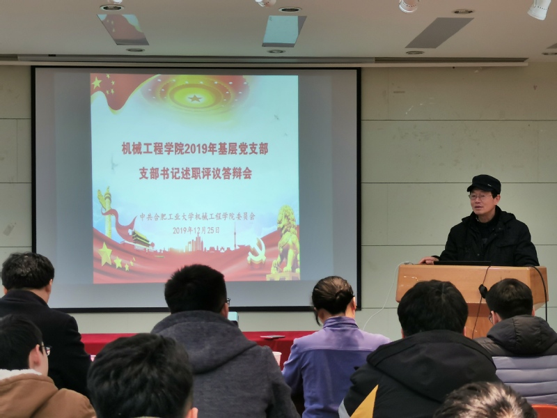 为深入贯彻落实习近平新时代中国特色社会主义思想和党的十九届四中全会精神,12月26日,机械工程学院在屯溪路校区格物楼316举行2019年度基层党支部书记述职答辩评议会,参加评议会的有机械工程学院党建组织员马南兴、学院党委书记韩江、各年级辅导员及全体基层学生党支部书记,评议会由学院党委副院长、副书记郑召丽主持。