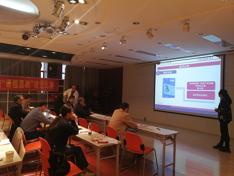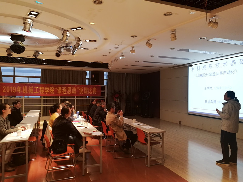 为全面贯彻党的十九大和全国高校思想政治工作会议精神,落实立德树人根本任务,充分发挥课堂主渠道在学校育人工作中的作用,使各类课程与思想政治理论课同向同行、形成协同效应,按照学校《发挥支部政治功能,强化课程思政建设——“教师党支部建设之课程思政”项目实施方案》安排,机械工程学院于2019年11月9日,在格物楼316多功能厅成功举办“课程思政”说课比赛,学院10位 “课程思政”教学改革示范课程项目立项课程负责人参加了比赛。