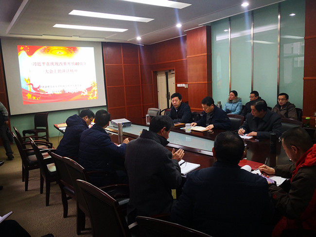12月19日上午,学院党委在格物楼308召开理论学习中心组(扩大)会议,专题学习习近平同志在纪念改革开放40年大会上的讲话精神。参加会议的有学院领导班子成员、党委委员、教工各支部书记、各基层二级单位负责人。会议由学院党委书记韩江同志主持。