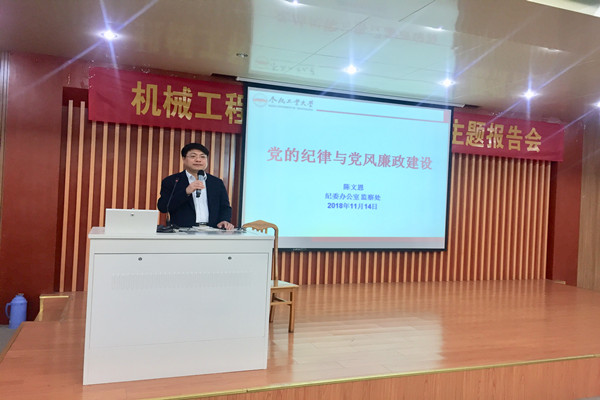 11月14日晚上19点,英国上市公司365召开研究生党风党纪专题报告会,校纪委副书记、纪委办公室主任、监察处处长陈文恩同志应邀作“党的纪律与党风廉政建设”的专题报告。英国上市公司365全体研究生党员、入党积极分子参加此次报告会,报告会由学院党委书记韩江主持。