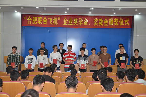 据介绍,“合肥联合飞机奖学金、奖教金”奖学金旨在奖励我校教师和学生刻苦钻研、勇于创新、献身航空事业,同时鼓励吸引优秀的毕业生加盟合肥联合飞机,致力于航空科技发展。