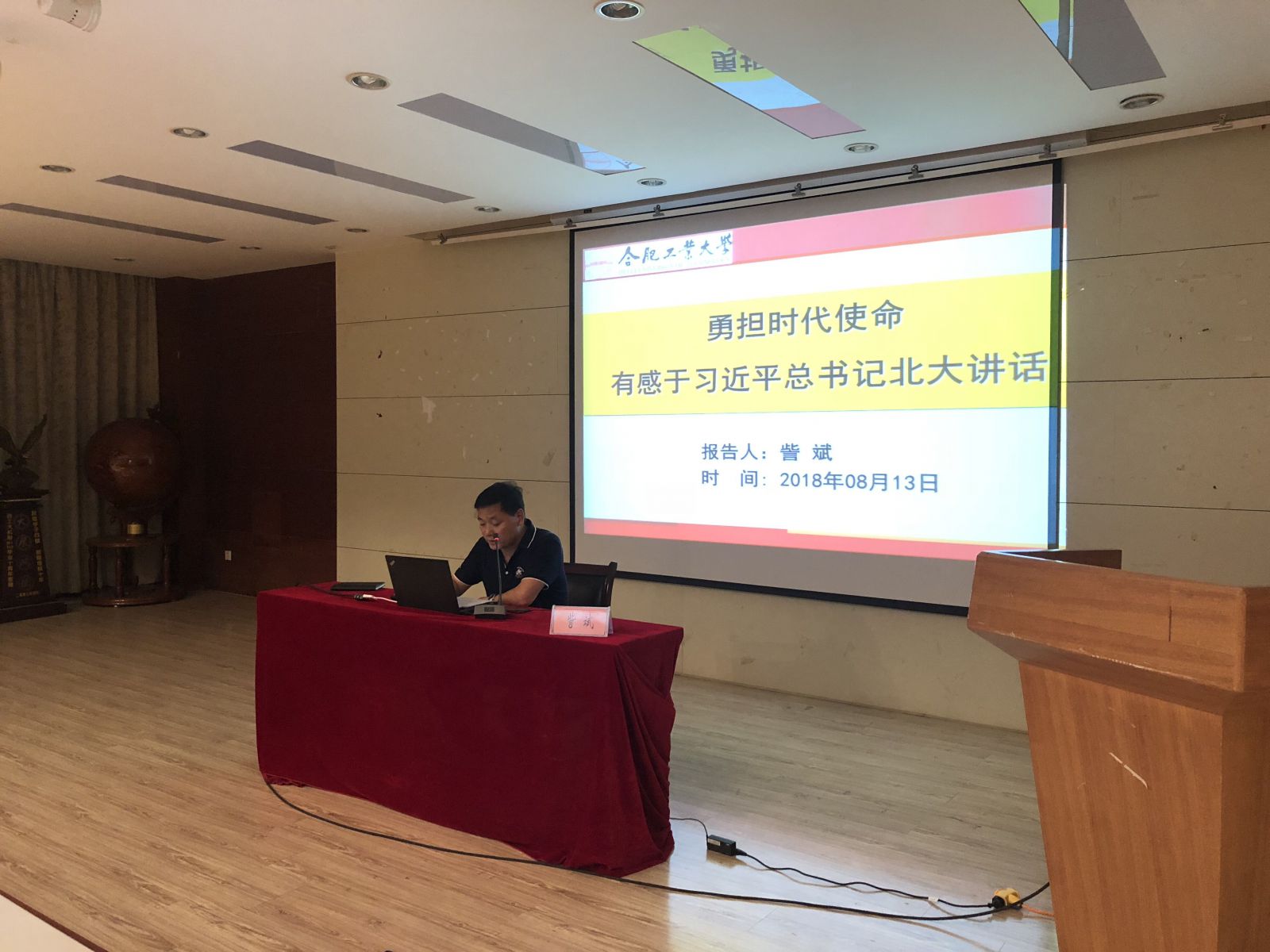 8月13日下午14时,院长訾斌教授在格物楼316为英国上市公司365研究生党员骨干代表上以《勇担时代使命,有感于习近平总书记北大讲话》为题的思政课。