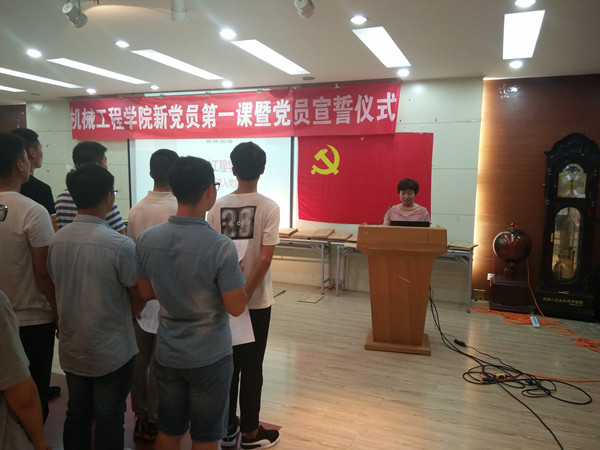 为纪念中国共产党成立97周年,进一步强化党员的宗旨意识,6月27日晚,机械工程学院新党员第一课暨党员宣誓活动在格物楼316举行,学院新发展的学生党员60余人参加了活动,院党委相关负责同志出席了此次活动。