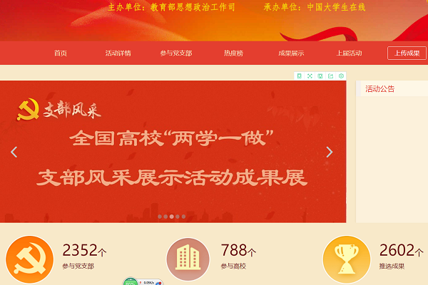 教育部及中国大学生在线“两学一做”学习教育支部风采展示活动页面
