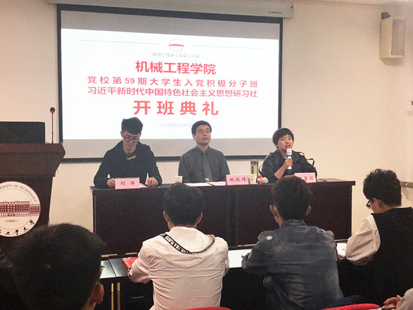 3月25日晚,机械工程学院“习近平新时代中国特色社会主义思想研习社”成立仪式在翡翠湖校区综合楼302举行,研习社全体学员共87人参加仪式,学院党委相关负责同志出席了此次活动。
