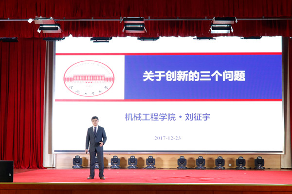此次“青春引路人”故事分享暨第六届“百里挑一”颁奖典礼以“思想引领”、“自主发展”、“创新创业”和“青春引路”四大篇章为主线,以英国上市公司365优秀教师、学生代表为典型,将颁奖与故事分享相结合,充分诠释了机械工程学院打造“学习机械、科学机械、人文机械、责任机械”的教育理念。伴随着青春洋溢、昂扬向上的《势在必行》歌曲,活动正式拉开帷幕。思想引领篇中,曾获校十佳大学生、十佳团支书的2015级本科生鲍诗娴,以《信仰的微光》为主题,将她坚定的理想信念之路分享给了在座的各位,她说:“信仰是一道光,看得清就不害怕”。自主发展篇中,该院研究生的啦啦操表演活力四射,让观众惊叹于“学术背后的女神”。曾获“斛兵青年英才奖学金”等荣誉,在学院倡导自主发展中成长起来的研究生杨木同学,秉承“制国之重器,造民之栋材”的学院育人理念为大家分享了题为《用一份坚持换一份成长》的励志成长故事,不仅体现了六年来他在机械成长的点滴,也为大一新生指明了成长的方向。创新创业篇中,深受学生喜爱、潜心创新创业辅导的机械工程学院机电系副主任刘征宇副教授以《创新的三个问题》为题,用一个个例子,拓宽了学生思维的维度,让学生深刻地意识到“原来创新创业离我们如此之近,只需要我们多想一步,多坚持一步”。刘征宇老师的分享,受到学生们的好评。在创新创业篇的最后,机械工程学院在“一二·九”文艺汇演中荣获一等奖的《空天鸿鹄》再次插上梦想的翅膀展现在观众面前,赢得了在场观众的热烈掌声。在青春引路篇中,该院辅导员刘洋老师他以个人经历为例,阐述了从一名机械学子成长为一名机械教师的心路历程。刘洋老师在演讲最后说道:“若故事从头,我心依旧”,体现了刘洋老师对机械工程学院热爱,对学生工作的满腔热血。