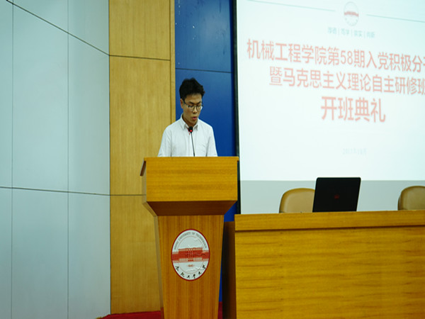 10月25日晚,机械工程学院马克思主义理论自主研修班开班典礼在学术会议中心大报告厅举行。校党委统战部、机械工程学院相关负责同志出席了开班典礼。