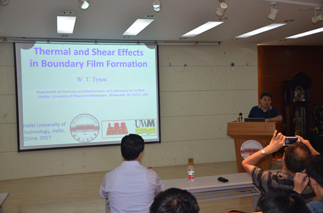 美国威斯康星大学密尔沃基校区Wilfred T Tysoe教授于9月24日-27日对我校进行了为期4天的学术访问与交流。Tysoe教授是美国威斯康星大学的杰出教授(Distinguished Professor)、机械摩擦学领域国际著名期刊《Tribology Letters》的创办人,1994-2017年任《Tribology Letters》期刊主编。他的主要研究兴趣包括超高真空环境下的机械摩擦学、表面化学以及微观摩擦学。