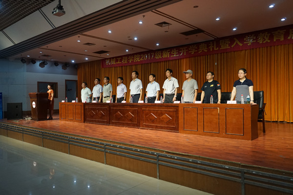 典礼在雄壮的国歌中开始,学院院长訾斌致欢迎辞,他向全体新生来到机械工程学院表示热烈祝贺,他深情回顾了该院的发展历程,介绍了学院学科建设和师资队伍的基本情况,并向全体同学提出三点希望和要求:一是树立远大理想,明是非,知荣辱;二是充分利用大学智力资源、人文资源,学会学习,不断提高学习效率;三是走向社会大舞台,在实践中,学会做人,学会做事。