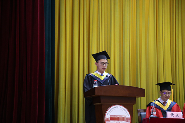 老师代表王玉琳和毕业生代表高远分别在仪式上发言,表达了老师对毕业生的祝愿与期盼以及毕业生对母校和老师的感恩。