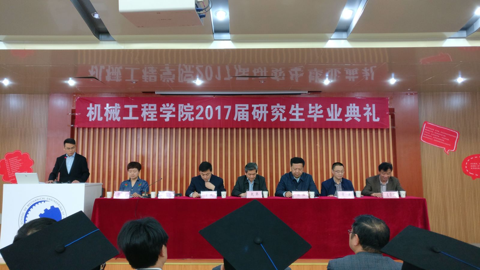 三载励志求学,一朝鲲鹏展翅。4月21日上午,机械工程学院2017届研究生毕业典礼在屯溪路校区机械楼二楼报告厅隆重举行。副校长赵韩、机械工程学院全体领导、导师代表及228名2017届研究生出席典礼,该院副院长黄海鸿主持典礼。