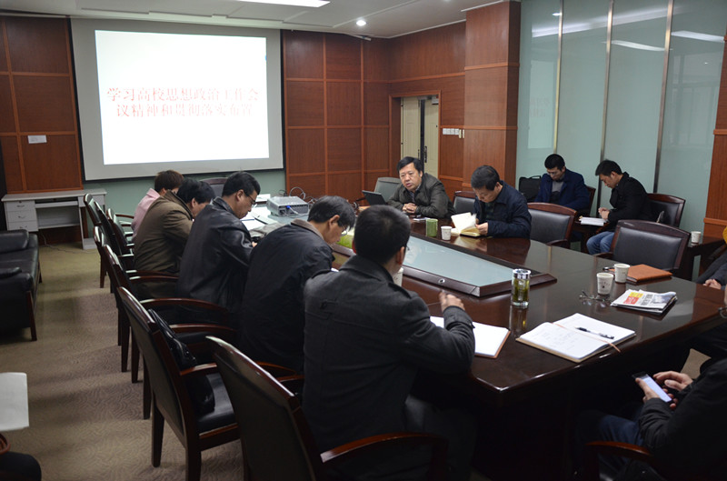 韩江书记带领全体参会人员共同学习了中共中央国务院印发的《关于加强和改进新形势下高校思想政治工作的意见》,从重要意义、总体要求、强化思想理论教育和价值引领、发挥哲学社会科学育人功能、加强对课堂教学和各类思想文化阵地的建设管理、加强教师队伍和专门力量建设、推进高校思想政治工作改革创新、加强和改善党对高校的领导等几个方面介绍了文件精神。郑召丽副书记带领大家学习了合肥工业大学《关于加强和改进新形势下思想政治工作的实施意见》,重点学习了重大意义、指导思想、主要任务和具体举措。