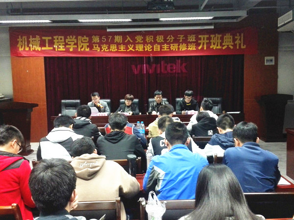 3月29日晚,机械工程学院分党校第57期入党积极分子班暨马克思主义理论自主研修班开班典礼在翡翠湖校区建艺馆613室举行,校党委统战部和英国上市公司365相关负责同志出席了此次典礼。