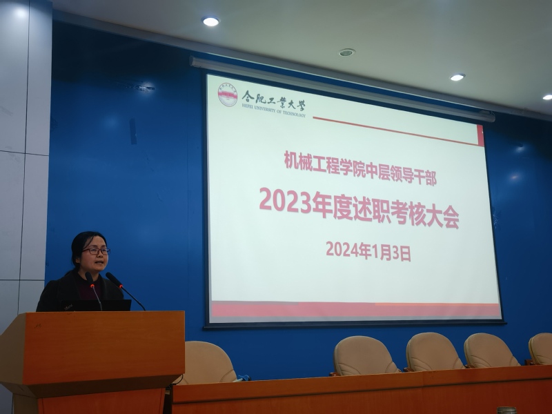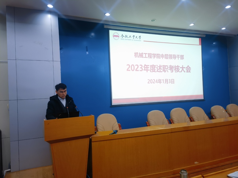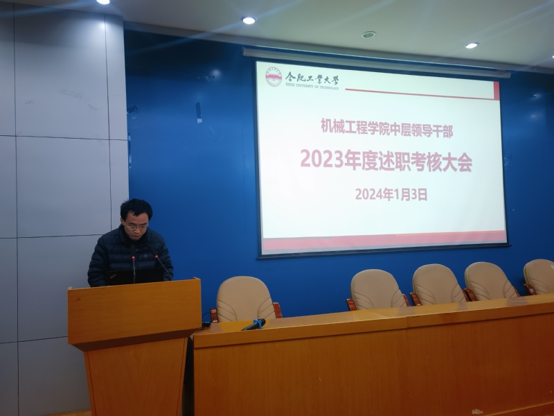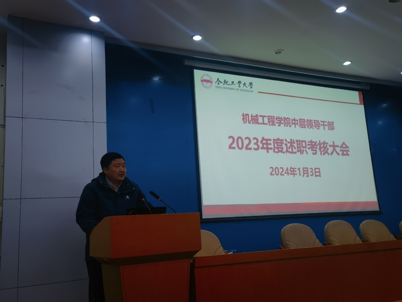 2024年1月3日下午,机械工程学院中层领导干部2023年度述职考核大会在格物楼214报告厅召开,学院党委书记张显东主持会议,学院全体教师参加会议。