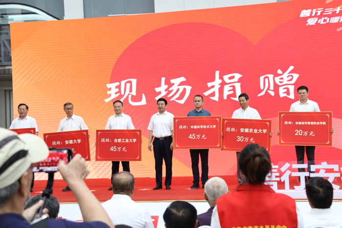 机械工程学院荣幸受邀参加2024慈善30周年纪念成果交流展。机械工程学院党委书记张显东应邀出席开幕式。5日当天,启动仪式在合肥骆岗中央公园举办。捐赠仪式上,安徽省慈善总会向我校教育基金会捐赠了45万元人民币,全部用于资助我校家庭经济困难学生。