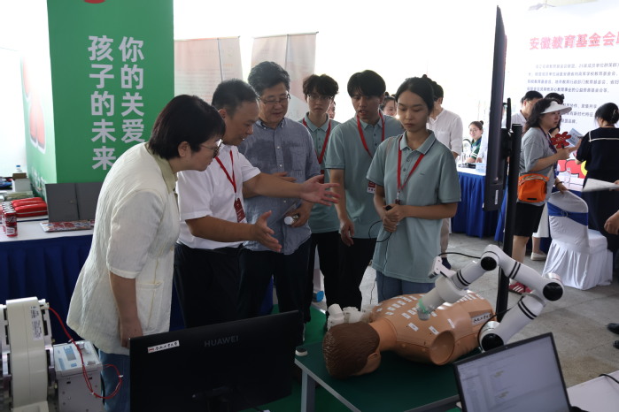 在基金会展区,英国上市公司365展出了曾亿山教授和张涛老师带领的DMD团队研发的“机器人一体化关节电子力矩估计器研究”和“基于经络穴位的中医药理疗机器人系统”两项创新成果,获得了与会领导和参观群众的高度评价。展会期间,DMD团队代表机械工程学院王梦雨同学以及来自安徽中医药大学范宇阳同学,现场向参观者展示团队成果。