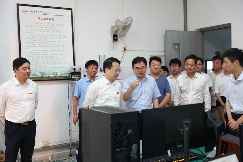 在调研过程中,郑磊校长与团队成员进行亲切交流,详细了解团队的研究方向、项目进展以及成员们的学习和生活情况。他对团队在科研创新、项目实践等方面所取得的显著成果表示充分肯定,并高度赞扬团队的努力和成就。郑磊校长还对联禾创新团队的实验室进行了考察,对实验室的设施、设备及科研环境表示赞赏。他鼓励团队成员们要充分利用这些优质资源,不断提升自己的科研能力和实践水平,保持良好的发展势头,勇做创新创业的青年先锋。