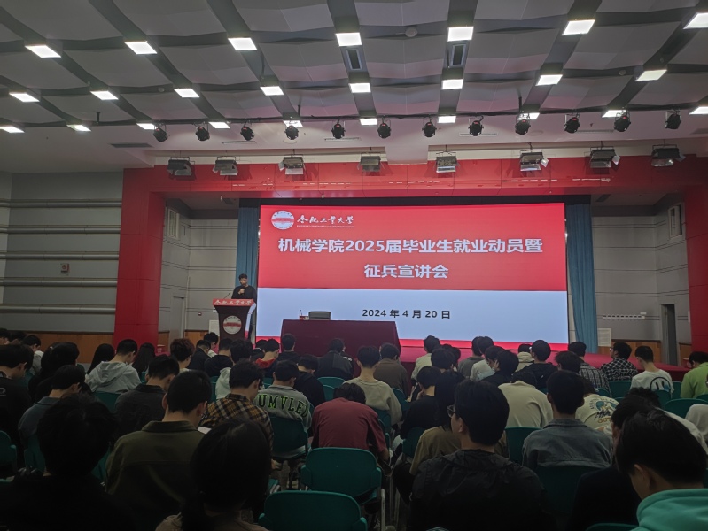 4月20日上午,机械工程学院面向2025届毕业生举办就业动员暨征兵宣传会,会议邀请包河区人武部部长朱宏刚担任主讲,学院党委副书记兼纪委书记蔡伟伟主持会议,学院2025届毕业班辅导员及部分2025届毕业生参与宣讲会。