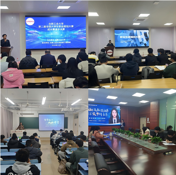 12月4日下午,学院承办合肥工业大学第二届全国大学生职业规划大赛成长赛道半决赛,安徽医科大学第二临床医学院(第二附属医院)党委副书记鲍丙刚、江汽集团招聘部部长宫文东、安徽建工检测科技集团党委工作部主管张礼锋等5位校外人员担任评委。参赛选手进行主题陈述答辩,全面展示职业规划,体现出工大学子清晰的自我认知、活跃的创新思维和强烈的成长意愿。安徽医科大学第二临床医学院(第二附属医院)党委副书记鲍丙刚对大赛进行了总结点评,肯定了各位选手的精彩表现。最后,经角逐,现场9名选手成功晋级校决赛。