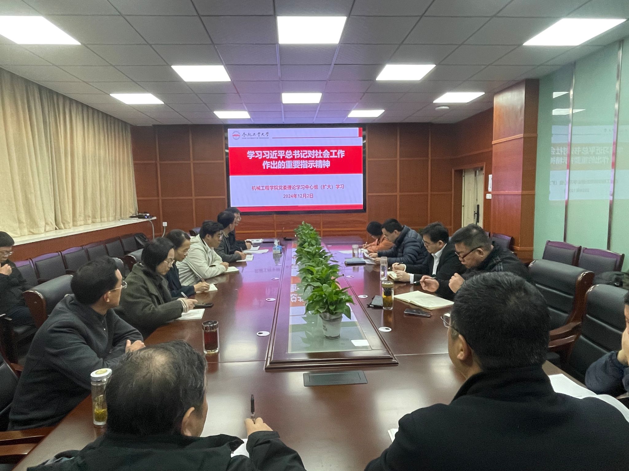 12月2日上午,机械工程学院党委理论学习中心组在格物楼308召开扩大会议开展集中学习,学院党委书记祖磊主持会议,学院党委理论学习中心组固定成员和系所主任、教工党支部书记参加学习。