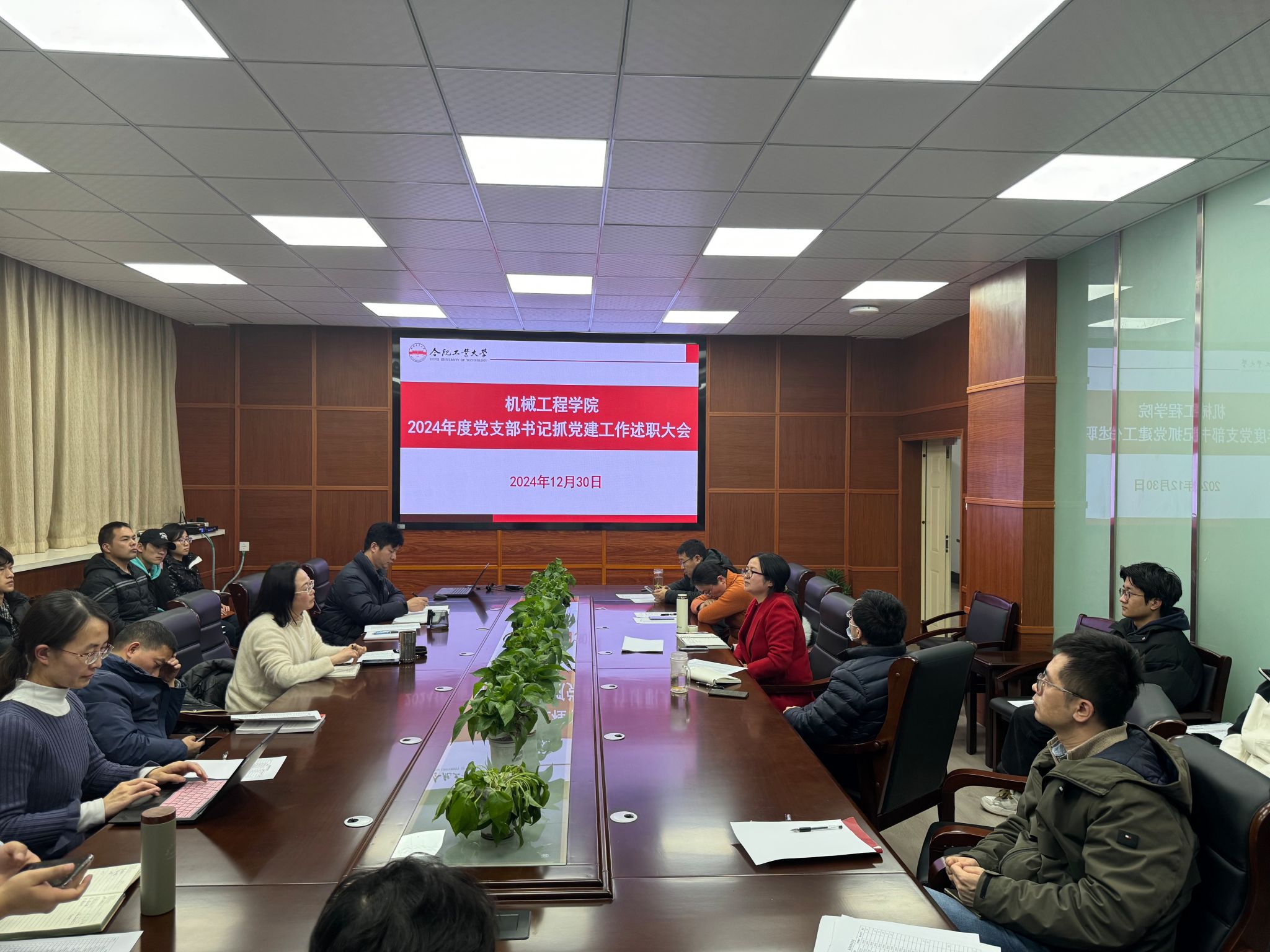 12月30日下午,机械工程学院党委召开了2024年度党支部书记抓党建述职大会,会议由学院党委书记祖磊主持,党委副书记蔡伟伟、正处级组织员史志胜、党委秘书倪记来、研究生辅导员范选娇、全体党支部书记参加会议。
