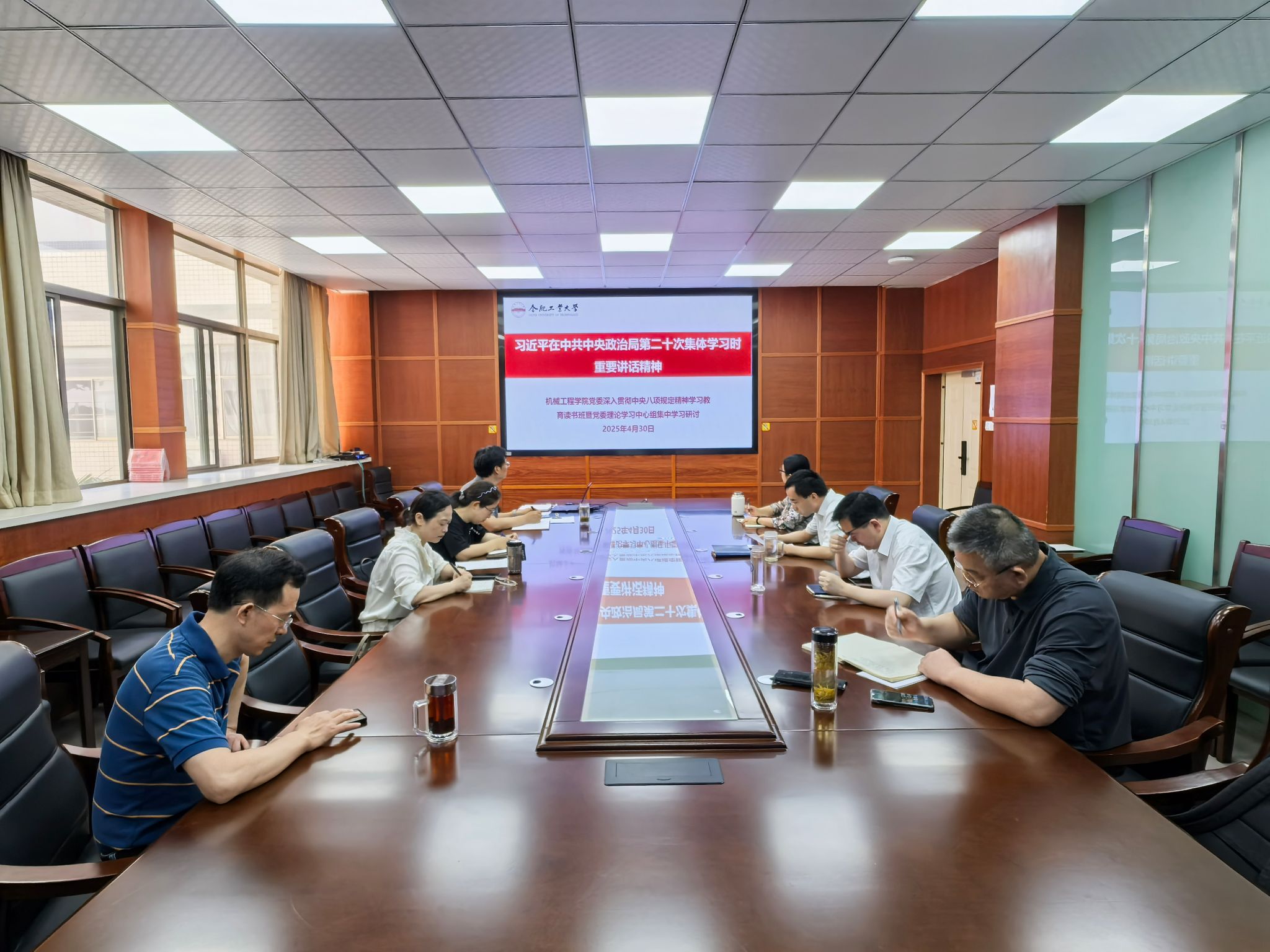4月30日上午,机械工程学院深入贯彻中央八项规定精神学习教育读书班在格物楼308召开会议开展集中学习,学院党委书记祖磊主持会议,党委理论学习中心组其他成员参加学习。