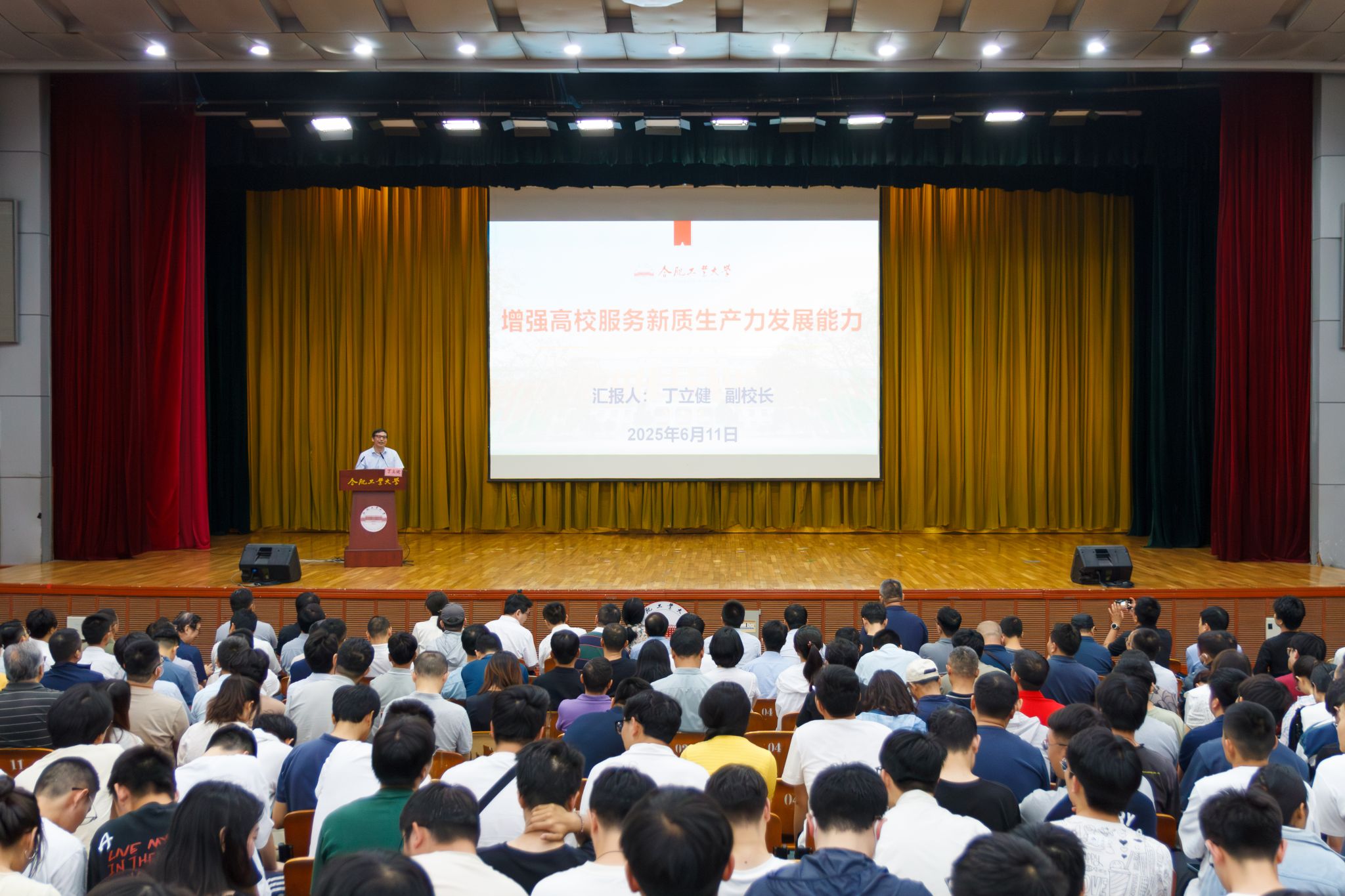 6月11日,副校长丁立健为机械工程学院师生及体育部教师作题为“增强高校服务新质生产力发展能力”的形势与政策报告,共700余名师生参加。报告由机械工程学院党委书记祖磊主持。