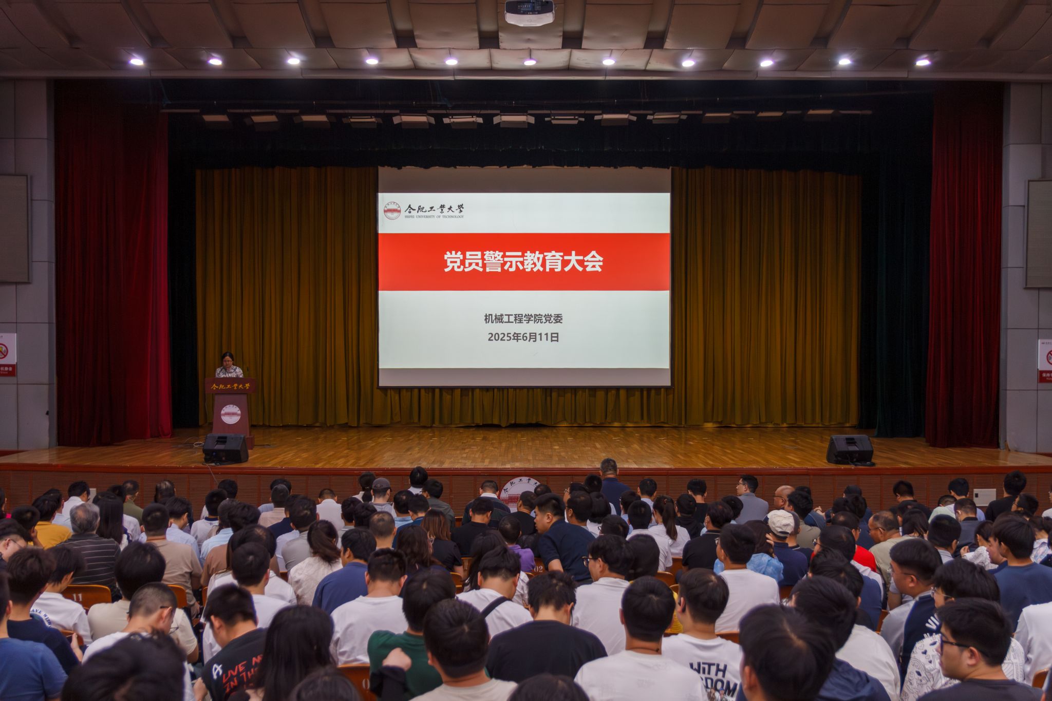 6月11日下午,机械工程学院党委在斛兵礼堂召开深入贯彻中央八项规定精神学习教育警示教育大会。学院党委副书记兼纪委书记蔡伟伟主持会议,学院党委委员、纪委委员、处级领导干部、师生党员共650余人参加大会。