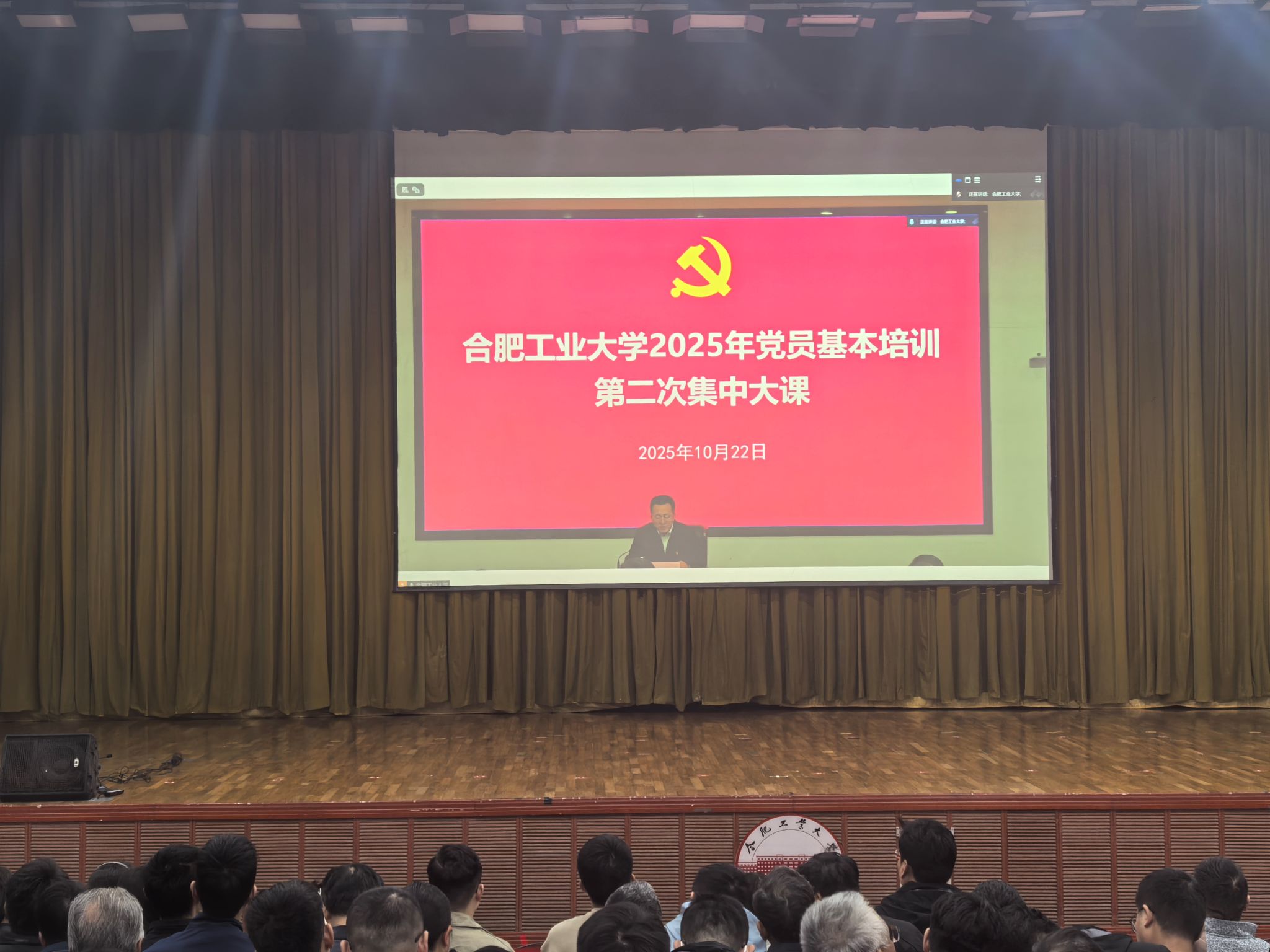 10月22日下午,合肥工业大学2025年党员基本培训第二次集中大课正式举办。机械工程学院党委积极部署,组织师生党员600余人在斛兵礼堂参加学习,集中学习教育部党组书记、部长怀进鹏主讲的“深入学习贯彻习近平总书记关于教育的重要论述 以教育强国支撑引领中国式现代化”视频辅导报告。