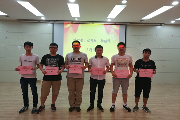 本次活动按照学习小组,共分为十组队伍,整场比赛感情充沛,热情洋溢。《团结就是力量》、《众人划桨开大船》、《黄河大合唱》、《歌唱祖国》等一首首耳熟能详的红歌回荡在会场内,激起了在场观众对党和祖国的无限热爱之情。《让我们荡起双桨》、《在灿烂的阳光下》深情抒发了对祖国母亲的祝福与依恋;《打靶归来》、《没有共产党,就没有新中国》将人们的思绪带回了激情澎湃、斗志昂扬的革命岁月,引领观众重温记忆中的红色经典。台上的选手深情地演唱,台下的观众听得如痴如醉,不时传来阵阵掌声。最后,第三组喜得桂冠,第一组位居第二,第七组获得第三名,比赛圆满结束。