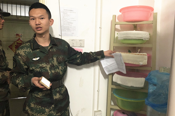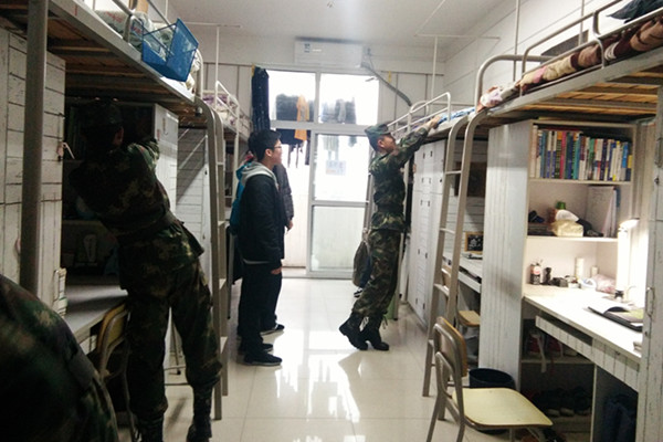 此次大扫除严格按照《机械工程学院2016级宿舍卫生要求》的内容进行整改,其中大至宿舍卫生间、居住区、阳台三大区域,细至寝室内电线、网线的规划、洗漱用品、闲置物品的摆放等都有要求。此次大扫除还请到了20名16级国防生同学组成“专家团”,他们每6人一组,分别对12号南楼4、5、6层机械学院男寝进行内务指导和检查。每一层楼,国防生们都会随机挑选1到2间宿舍进行细致的整改,并以此作为示例,邀请各寝室寝室长前来学习。在此过程中,同学们既学到了一些整理内务的技巧,同时也使寝室风气焕然一新。